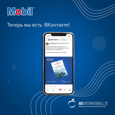 Оповещаем вас о том, что компания ABS International теперь представлена в социальной сети ВКонтакте! На нашей страничке вы найдете много полезной информации о бренде и смазочных материалах MOBIL, новинках, расширении ассортимента, скидках, акциях и спецпредложениях. Кроме того, вы сможете задать интересующие вас вопросы, поучаствовать в голосованиях, конкурсах, обсудить интересные темы и просто приятно провести время.